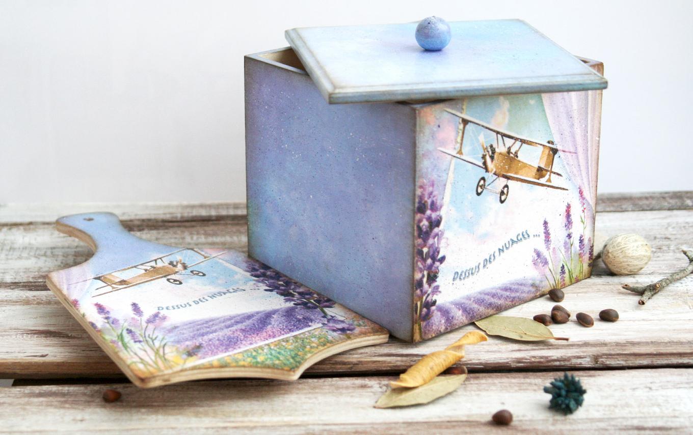 Прованский стиль подчеркивает изящество простоты. Его мотивы незамысловаты, при этом не лишены мастерского исполнения. С помощью декупажа, наверное, проще всего начинать «наступление» стиля в интерьере. Можно декорировать бутылочки, ведра, этажерки, хлебницы, салфетницы, столик и стулья, поверхности кухонного гарнитура и буфета, кувшина, бидона и т.д. Особо популярен у нас декупаж венского стула.