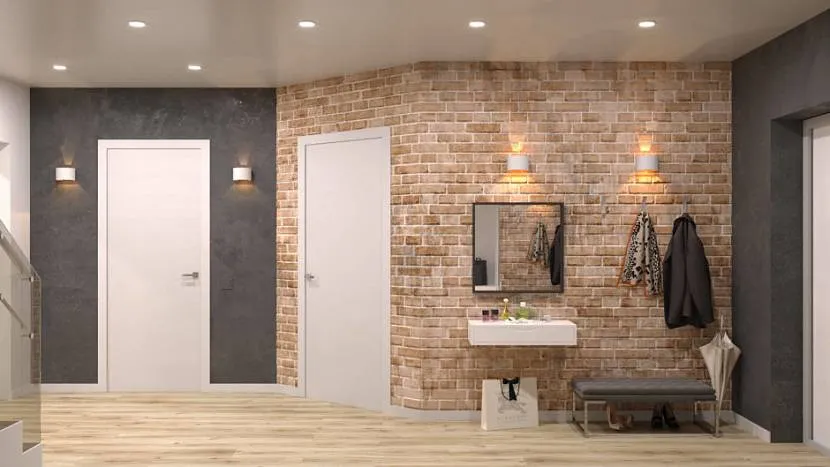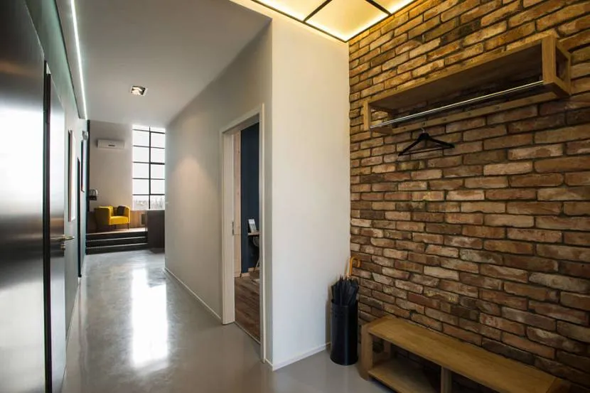 Декоративная отделка стен в прихожей в стиле лофт Источник yellowhome.ru/2019