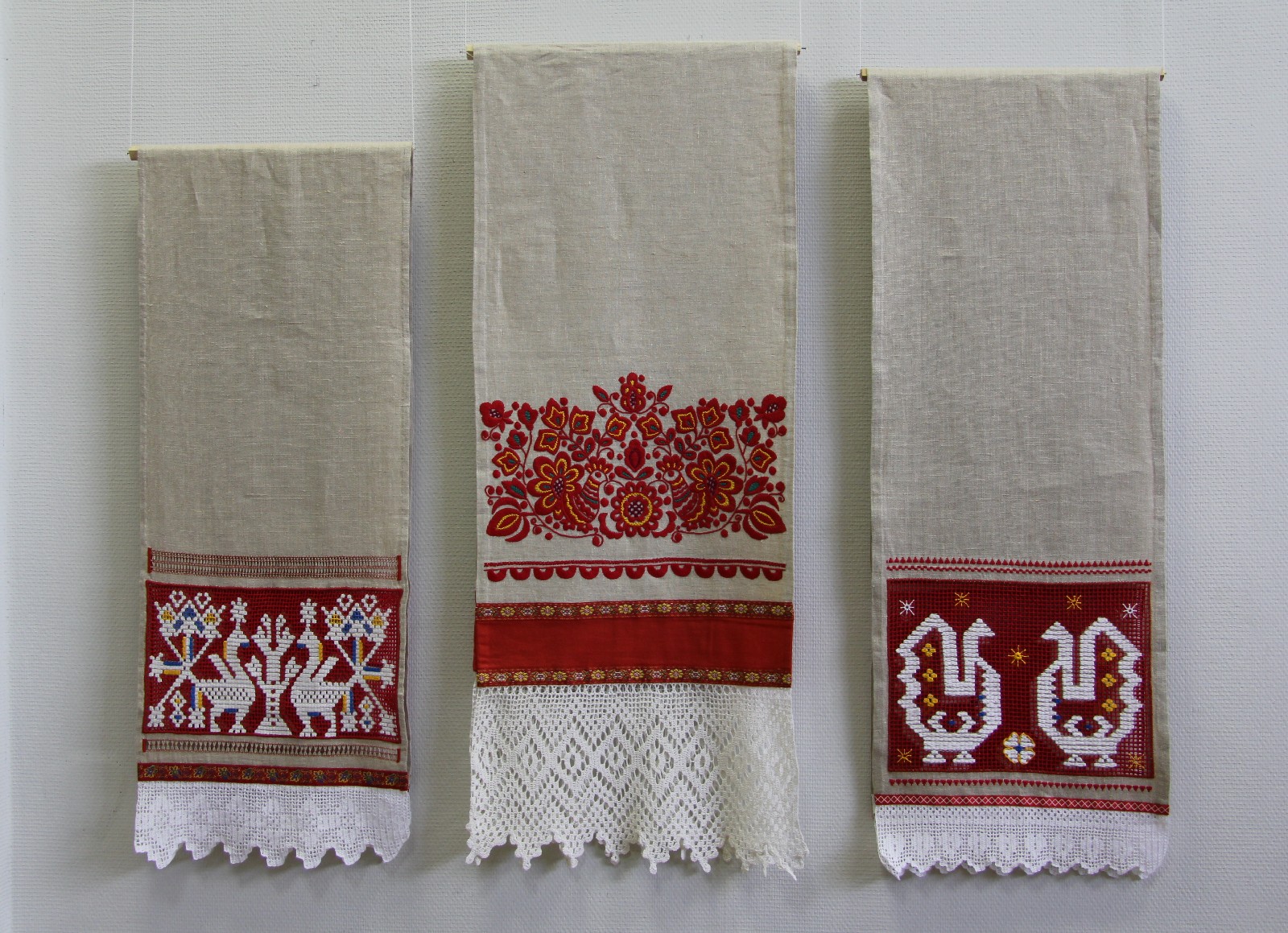 В музеях сейчас можно увидеть много образцов народной вышивки. Конечно, лучше всего сохранились работы 19 века. Прочные традиции имела народная вышивка, в отличие от городской. Городская была больше подвержена влиянию моды, что не распространялось на народную. В деревнях девочки приготавливали себе приданное уже к 13-15 годам. Этим приданным были вышитые подарки, скатерти, полотенца, предметы одежды и так далее. Незадолго до свадьбы, чтобы оценить уровень мастерства девушки, устраивалась выставка. Затем уже на свадьбе все то, что девушка вышила своими руками, она дарила родственникам жениха.