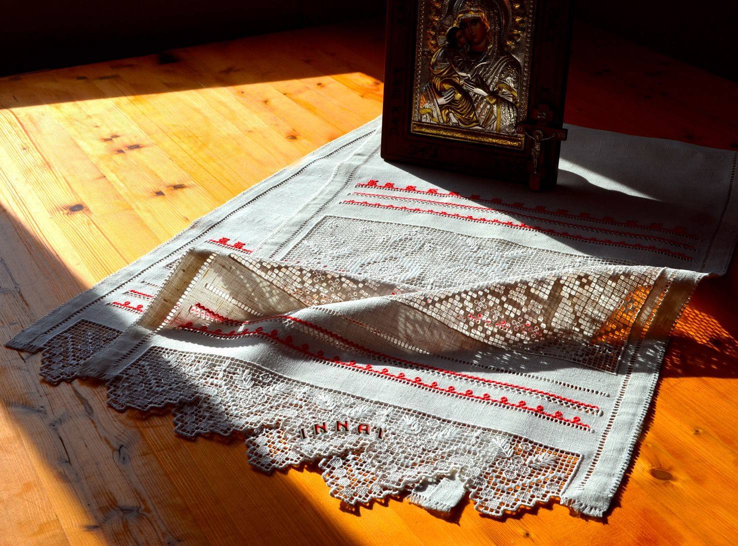 После прихода на Русь христианства изделия с вышивкой приобрели новое значение. Люди стали украшать вышитыми вещами окна, зеркала и иконы. Особенно ценными считались изделия, вышитые за один день. Обычно над такими вещами работали сразу несколько мастериц. Начинали на рассвете, и если удавалось закончить работу до захода солнца, то изделие считалось идеально чистым и способным защитить от злых сил, стихийных бедствий, болезней и других напастей.