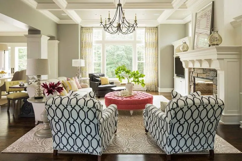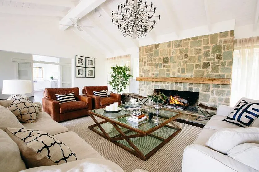 - отлично в таком интерьере смотрится камин, арочные окна и двери.