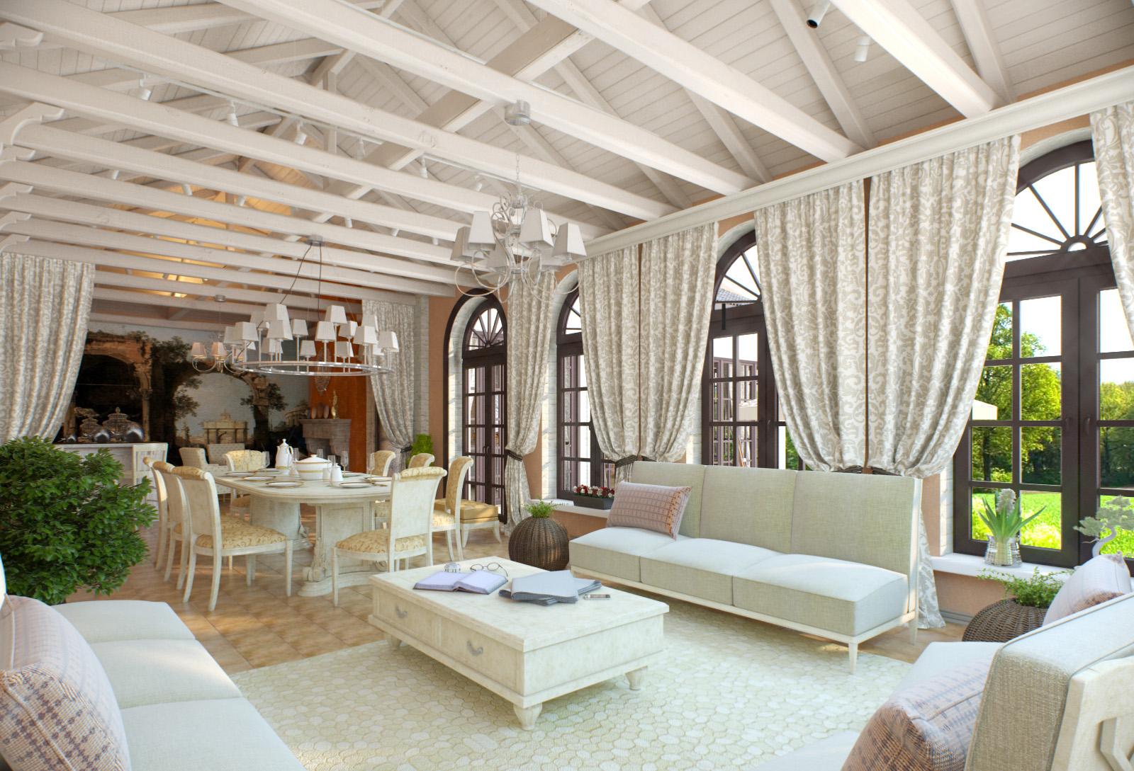 Особое внимание уделяется потолкам: Они опускаются и украшаются деревянными балками или стропилами