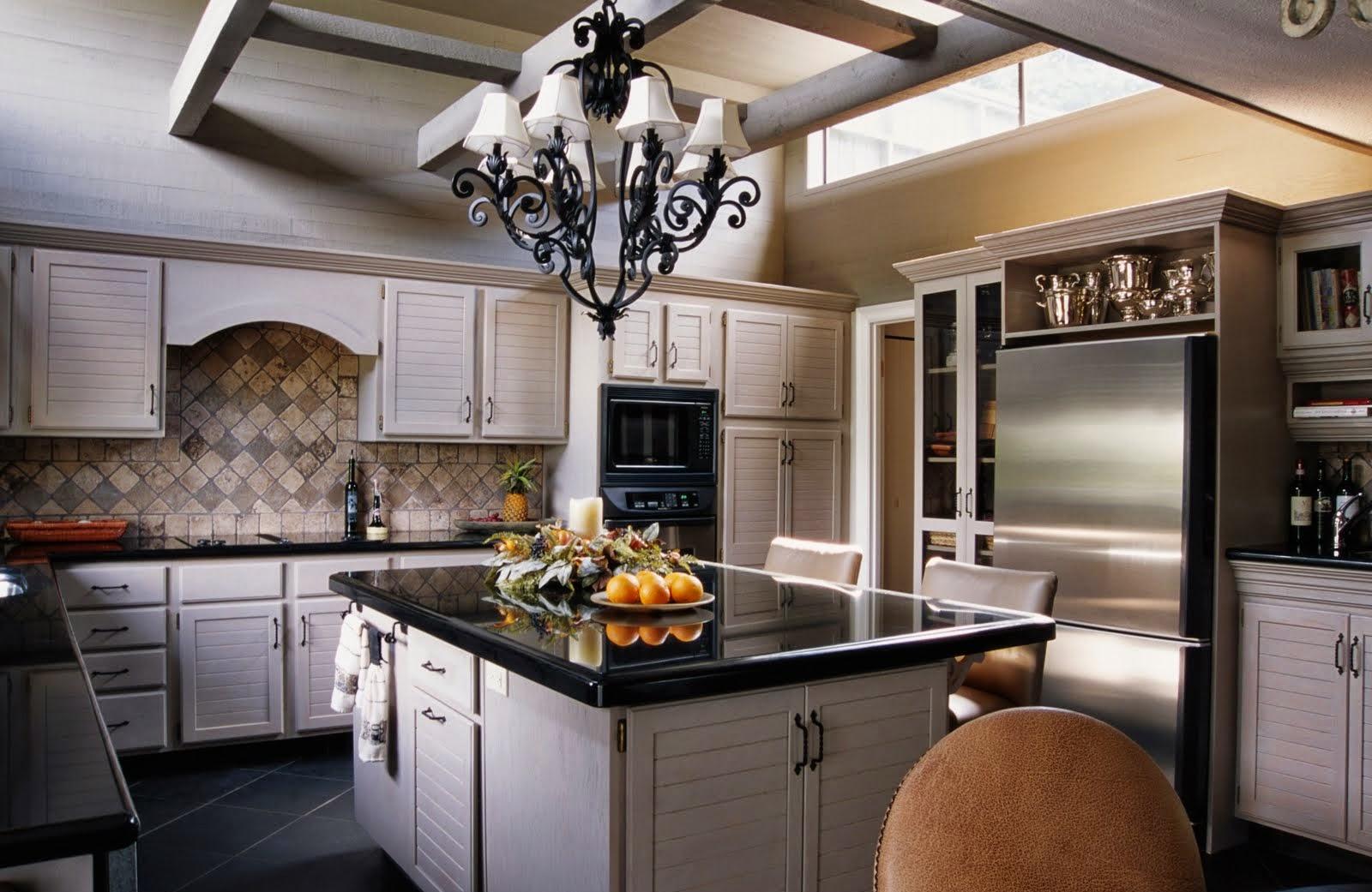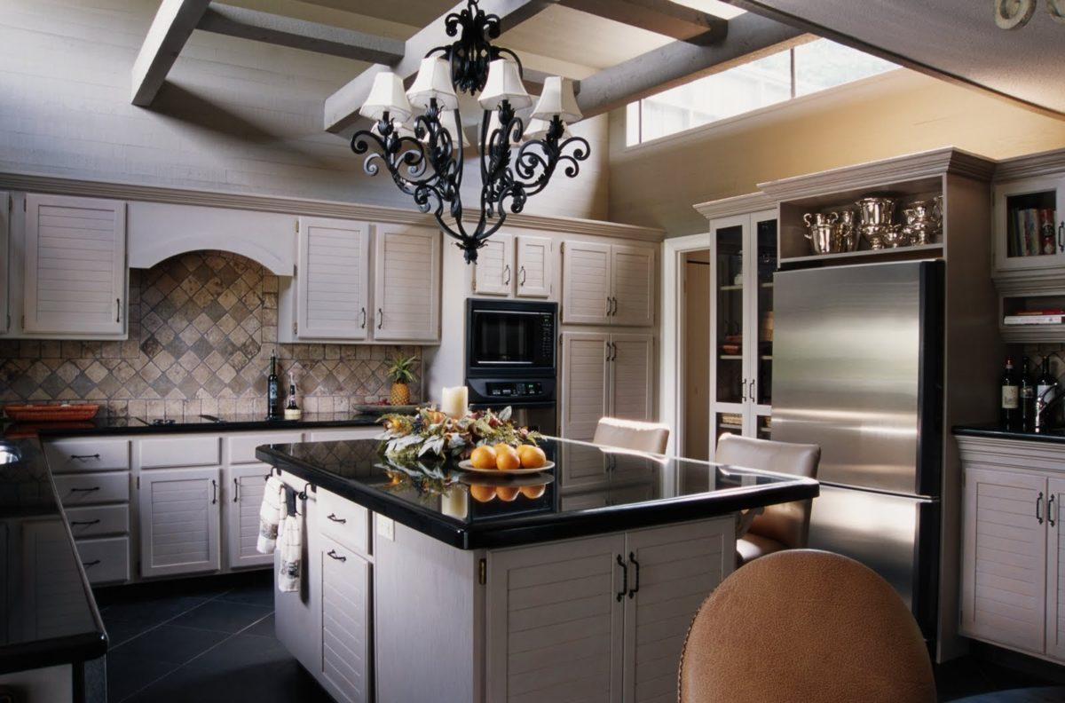 Кухонный гарнитур в итальянском стиле всегда массивный. Это тяжелые добротные столы из дерева, с массивными ножками, которые могут украшать элементы художественной резьбы, а также вставки из ковки.