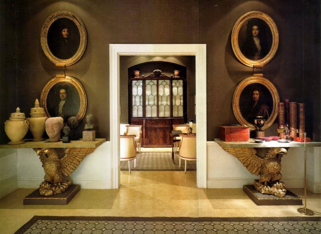 - изобилие антиквариата — старинные статуэтки, коллекции столовых приборов из серебра или посуды из фарфора, репродукции или подлинные картины с изображением мифологических сюжетов, оливковых рощ или прочих флористических мотивов.