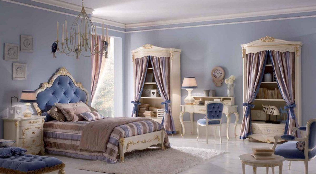 Для освещения подойдет комбинация кованой люстры и небольших настенных светильников сферической формы. Для хранения одежды, книг, принадлежностей для творчества подойдут открытые полки или комоды с выдвижными ящиками.