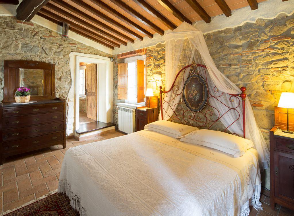 Обязательно использование кованых аксессуаров. Это могут быть подсвечники, лампы и бра. Кровать в тосканском стиле часто имеет кованое изголовье.