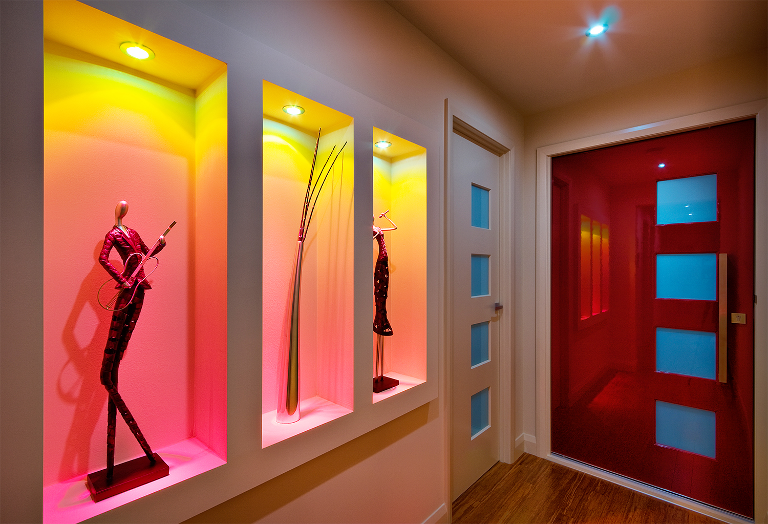 Главное при оборудовании ниш – иметь чувство меры. Изобилие таких углублений вместо расширения пространства начинает его перегружать, подавляя количеством подробностей. Если же в стене предполагается соорудить несколько ниш, нужно продумать их взаимное размещение, чтобы они не конкурировали между собой и не противоречили друг другу.