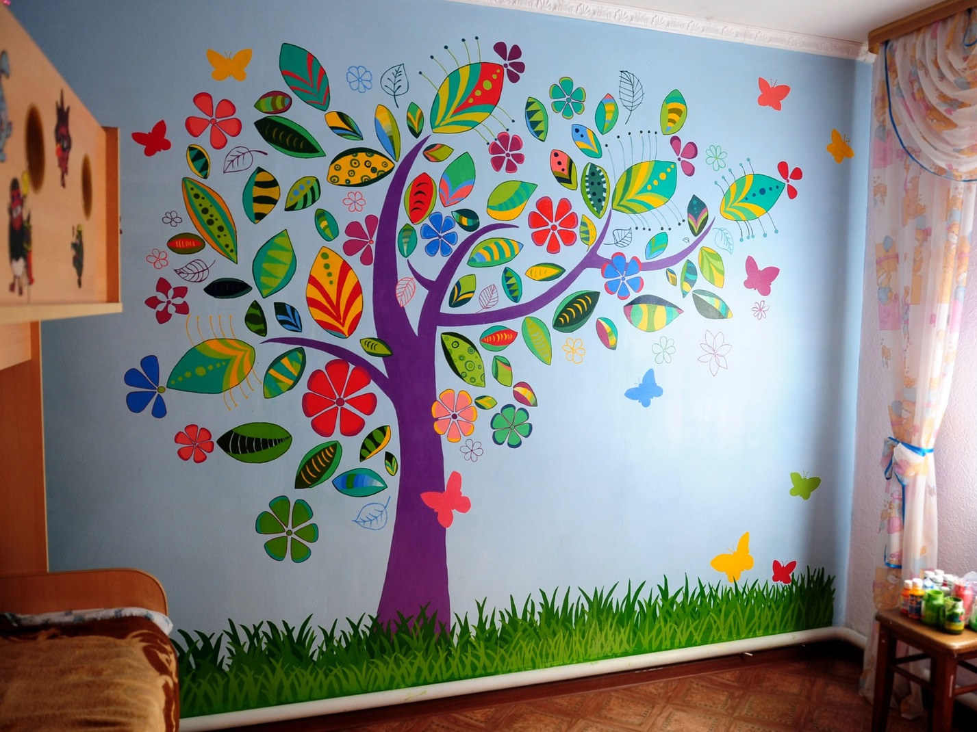 Предоставьте ребенку право выбора росписи – ведь это он будет жить в сказочном мире, который вы создадите. Спросите его – что бы он хотел видеть на стенах своей комнаты. Может быть, это звезды или облака? Или это мультипликационные герои? А может быть это его собственные эскизы?
