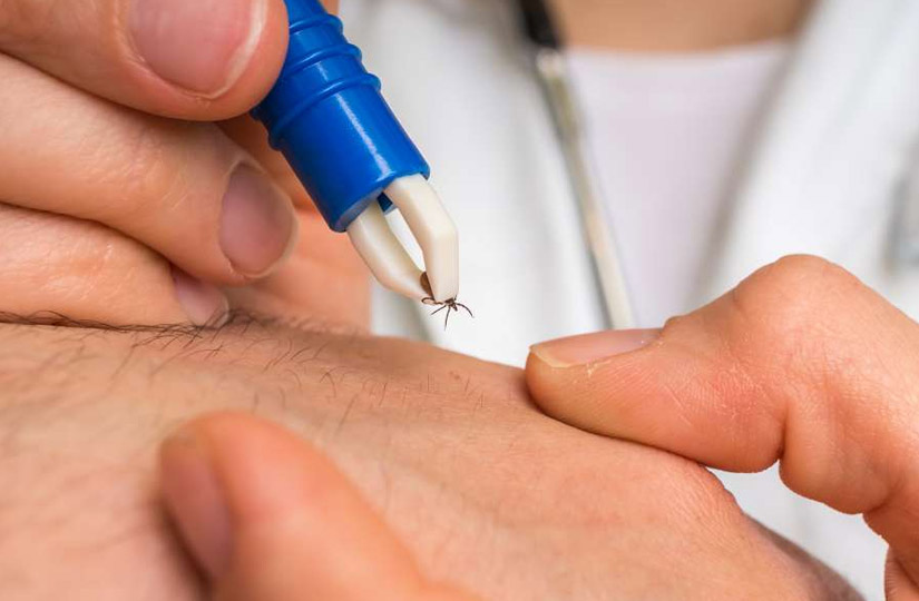 - Используйте пинцет. Захватите клеща ближе к хоботку и аккуратно вращайте его в любую сторону. Обычно через 1–3 оборота клещ извлекается целиком, вместе с хоботком.