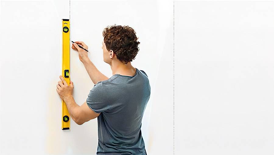 Чтобы в углах комнаты получилось хорошо поклеить виниловые полотна, необходимо предварительно сделать разметку.