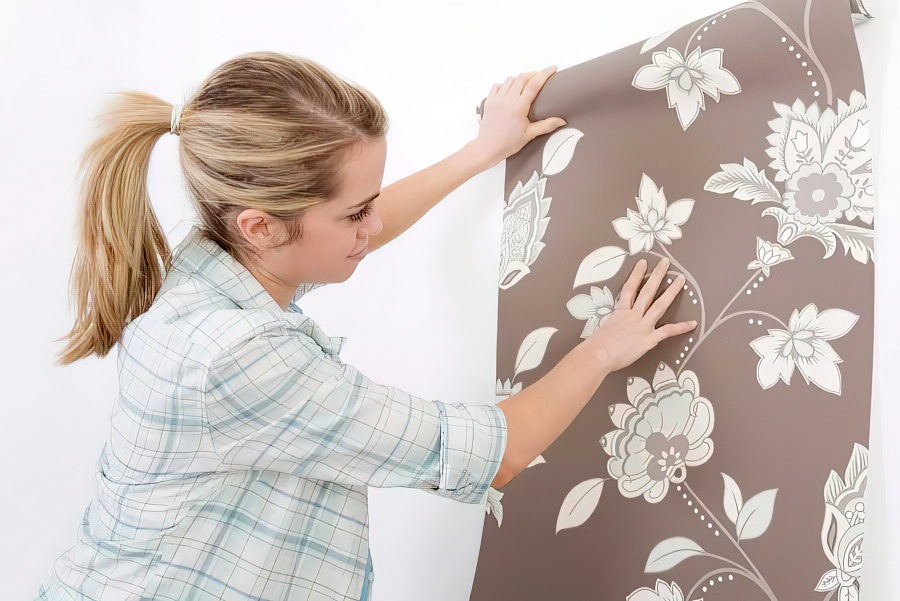 Начинать приклеивать следует сверху. Обойное полотно приклеивается вверху стены, а потом выравнивается по ранее проведенной вертикальной линии. После этого обойный лист нужно сильно прижать к стене. Потом его тщательно проглаживают щеткой, шпателем или губкой по всей длине