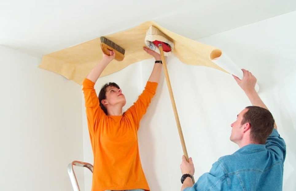 При ремонте квартиры на данном этапе важно, чтобы комната была закрыта, а внутри помещения было тепло и влажно. Только в этом случае обои на потолке хорошо высохнут