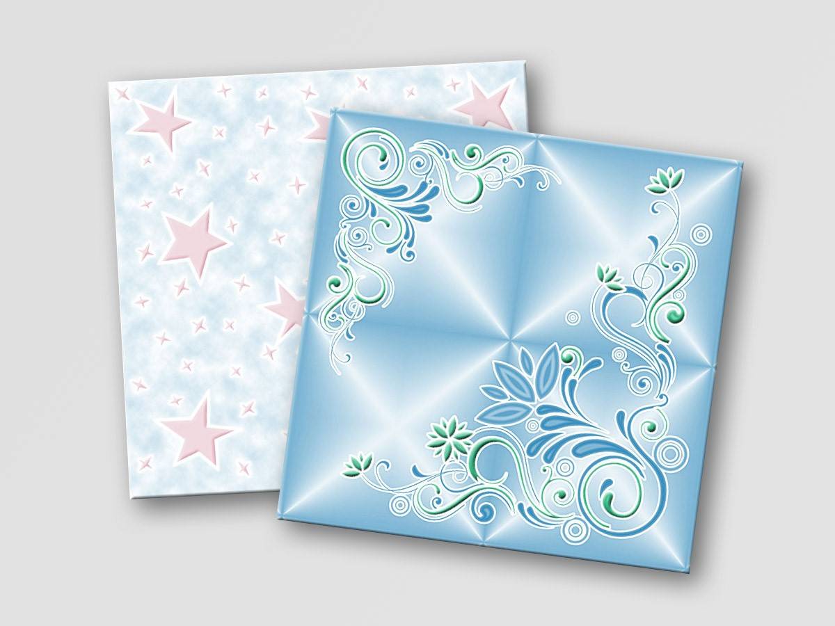 - Потолочная инжекционная плитка имеет толщину от 9 мм до 14 мм. Ее технология производства сложнее: материал обрабатывается при высоких температурах, спекается, при этом получается красивый рельеф и изделия необходимой формы.