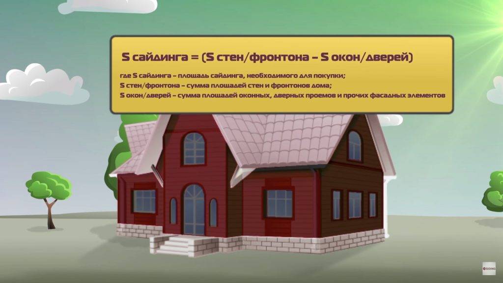 Для расчета расходных материалов требуется высчитать площадь обшиваемого сайдингом фасада, а затем поделить ее на квадратуру выбранных панелей. При этом надо учесть размеры окон с дверьми, которые имеет дом, убрав их из вычислений. Также нужно взять запас в 10% на подгонку, чтобы отделать все можно было без проблем и ограничений.