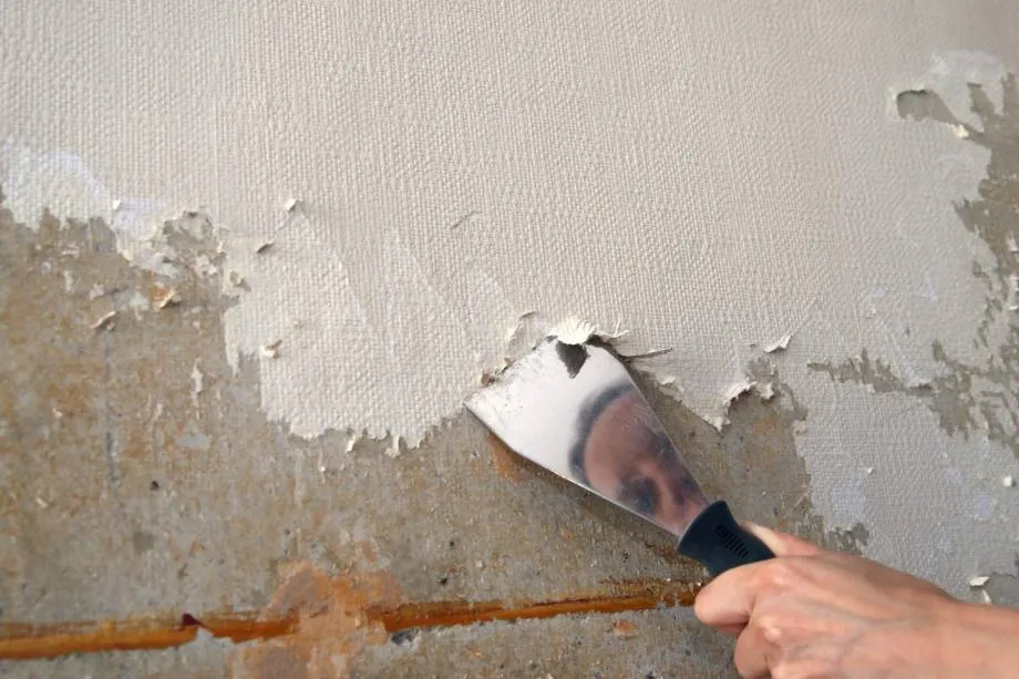 Если часть покрытия отошла от сырости или по другим причинам и сдирается легко, нужно ее удалить перед началом работ.
