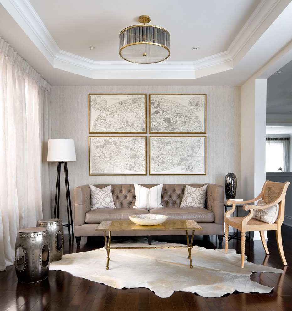- Нейтралитет. Самый универсальный выбор: такой же сдержанный оттенок сочетается с голубовато-серым, белым и черным цветами. Пример: белый диван для бежевой спальни.