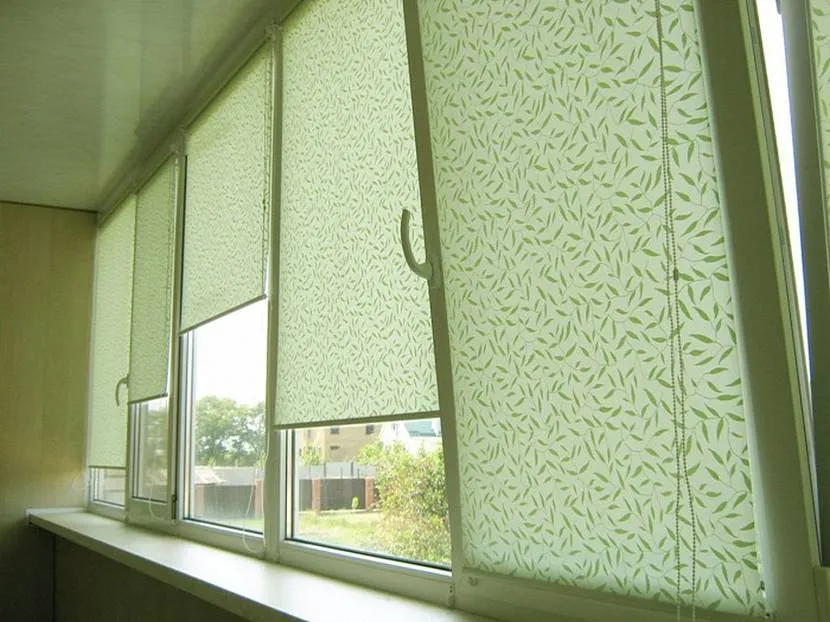 Зеленые рольшторы в гостиной Синие шторы в спальне
