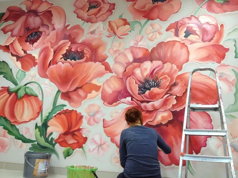 - Возможность добавления пигментов позволяет производителям выпускать краски широкой цветовой палитры. Сегодня при помощи них можно не только окрашивать поверхности разного типа, но и создавать красочные картины. Чему рады художники, занимающиеся росписью стен и потолков.