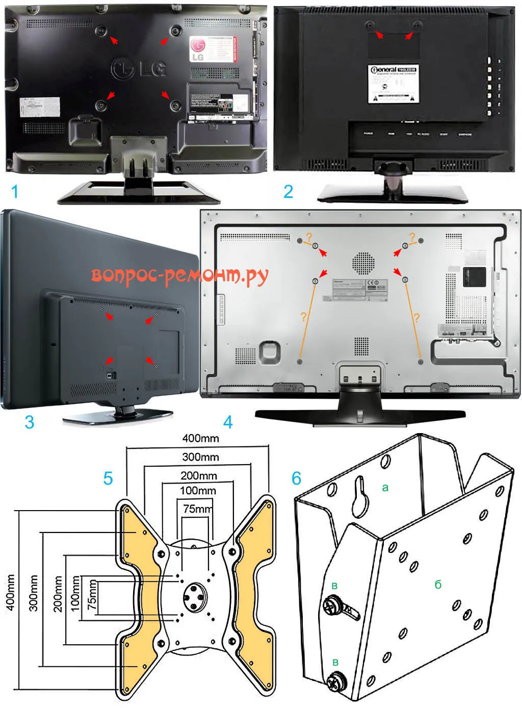 Точку в этом вопросе поставила организация VESA, разработав единственную для всех производителей таблицу. В ней указываются расположение отверстий на задней панели телевизора и их диаметр, которые, в свою очередь, должны соответствовать телевизорам и компьютерным мониторам с соответствующими габаритами и весом.