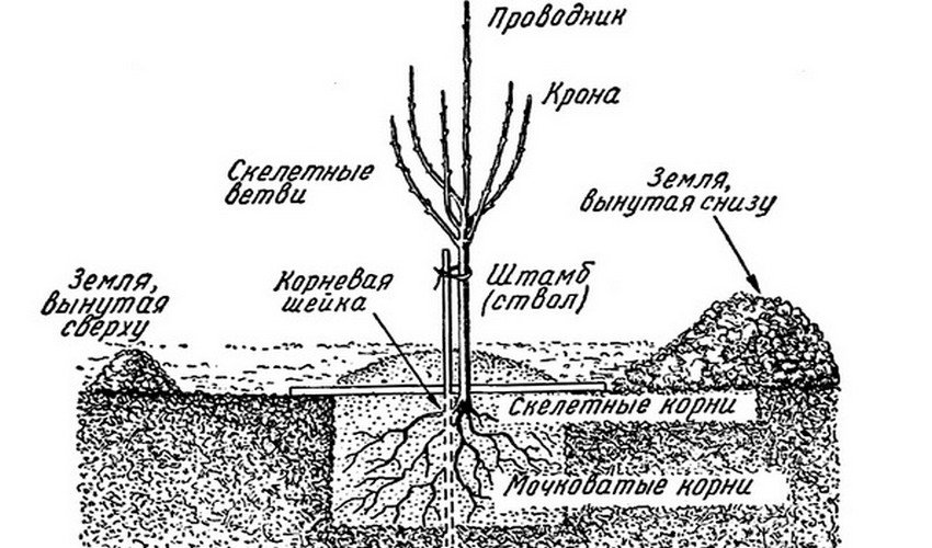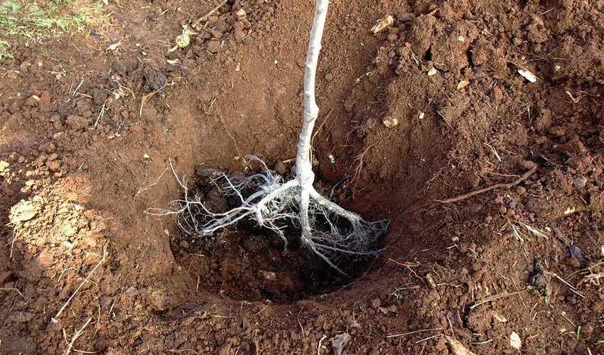 - Корни расправляют так, чтобы они не задирались вверх, а под ними не было пустот.