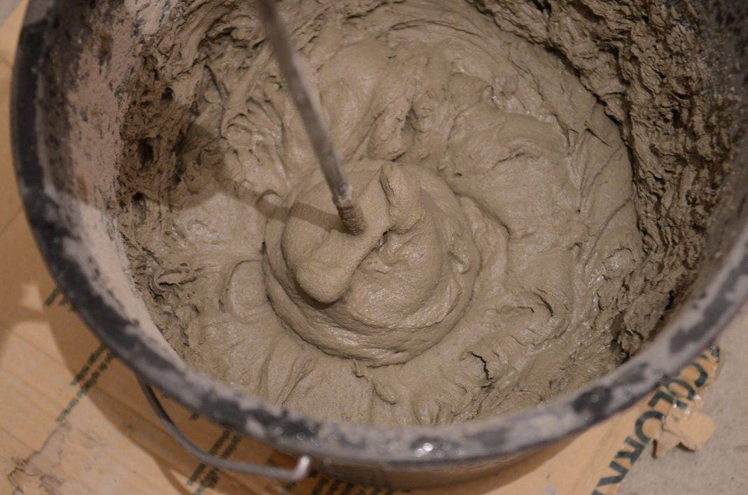 К глине добавляется песок и ¼ воды. Все компоненты перемешиваются для получения густой тягучей массы. Для повышения прочности в подобную смесь рекомендуется добавить каменной соли или цемента. На ведро смеси – до 250 г соли и ¾ литра цемента. Соль предварительно растворяют в воде, а цемент разводят водой до густой консистенции, после чего добавляют в готовую основу.