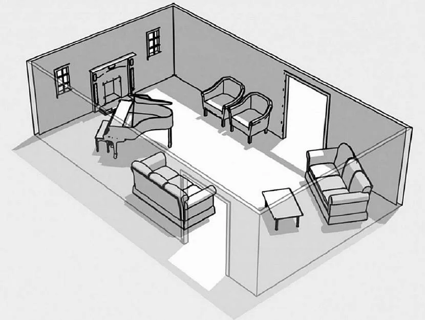 - составляя план расстановки мебели в гостиной стоит учитывать, что по закону эргономики 50% комнаты должно оставаться свободной;
