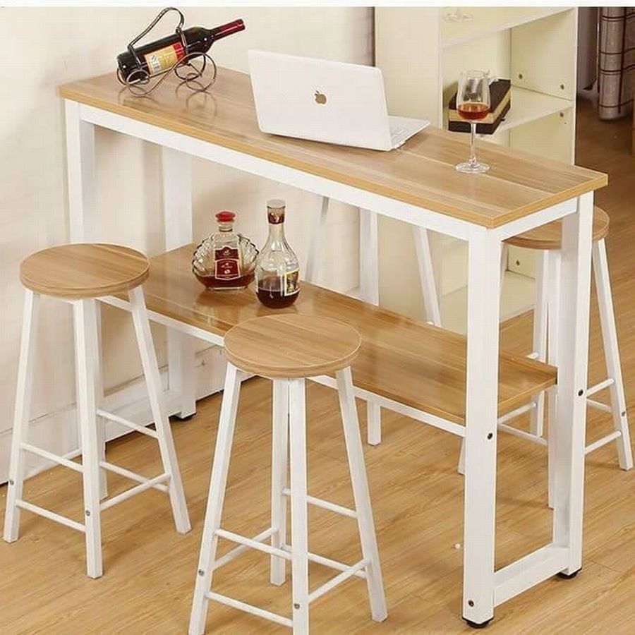 Это могут быть полки, держать которые будет металлическая труба либо ящики и полки, которые помещаются в основании. Как правило, высота столешницы в барной стойке должна быть равна высоте рабочего стола либо быть чуть выше.