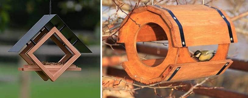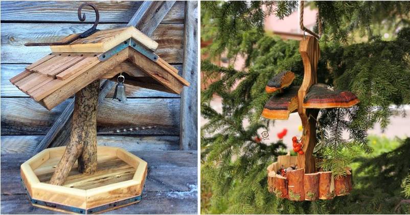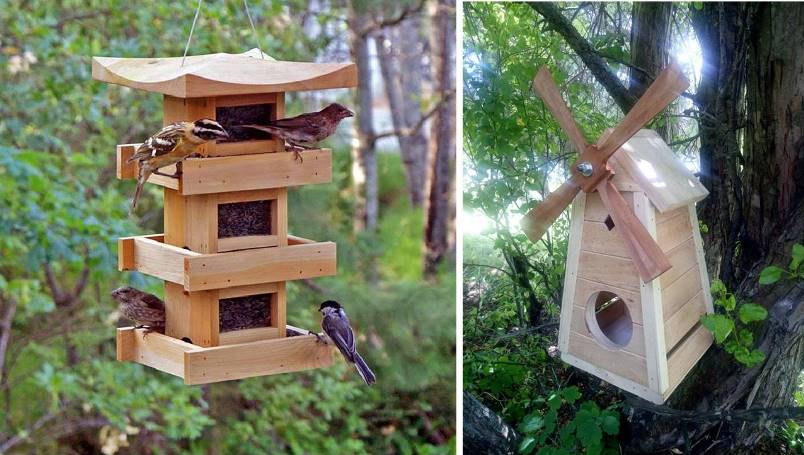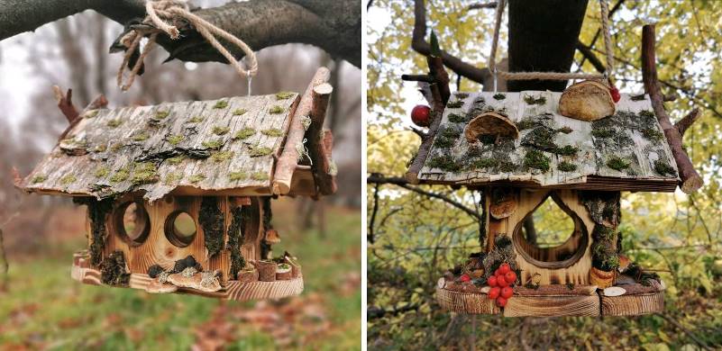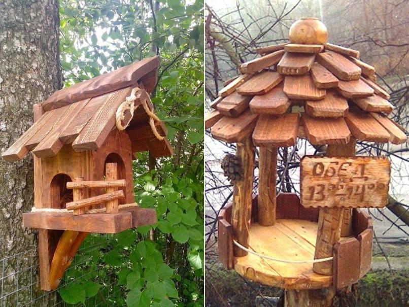 Такие деревянные кормушки тоже очень интересно смотрятся и будут полезны птицам.