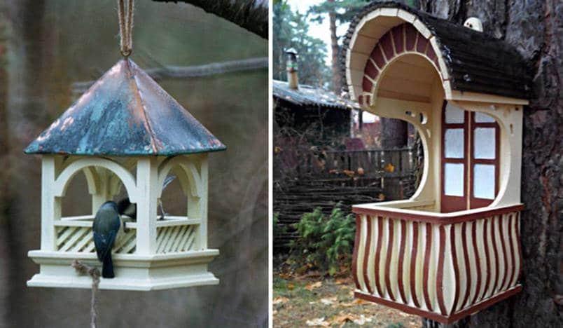Беседка, балкон, а почему бы и нет? Например, кормушка в виде домика — это уже традиция.