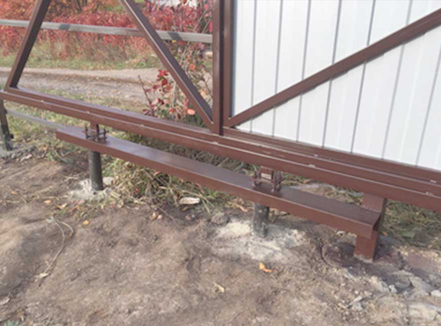 Опорные площадки контролируют дистанцию между поверхностью грунта и нижней направляющей. Ими же выставляют высоту роликов. От того, как их смонтируют, зависит, насколько створки будут возвышаться над землей.