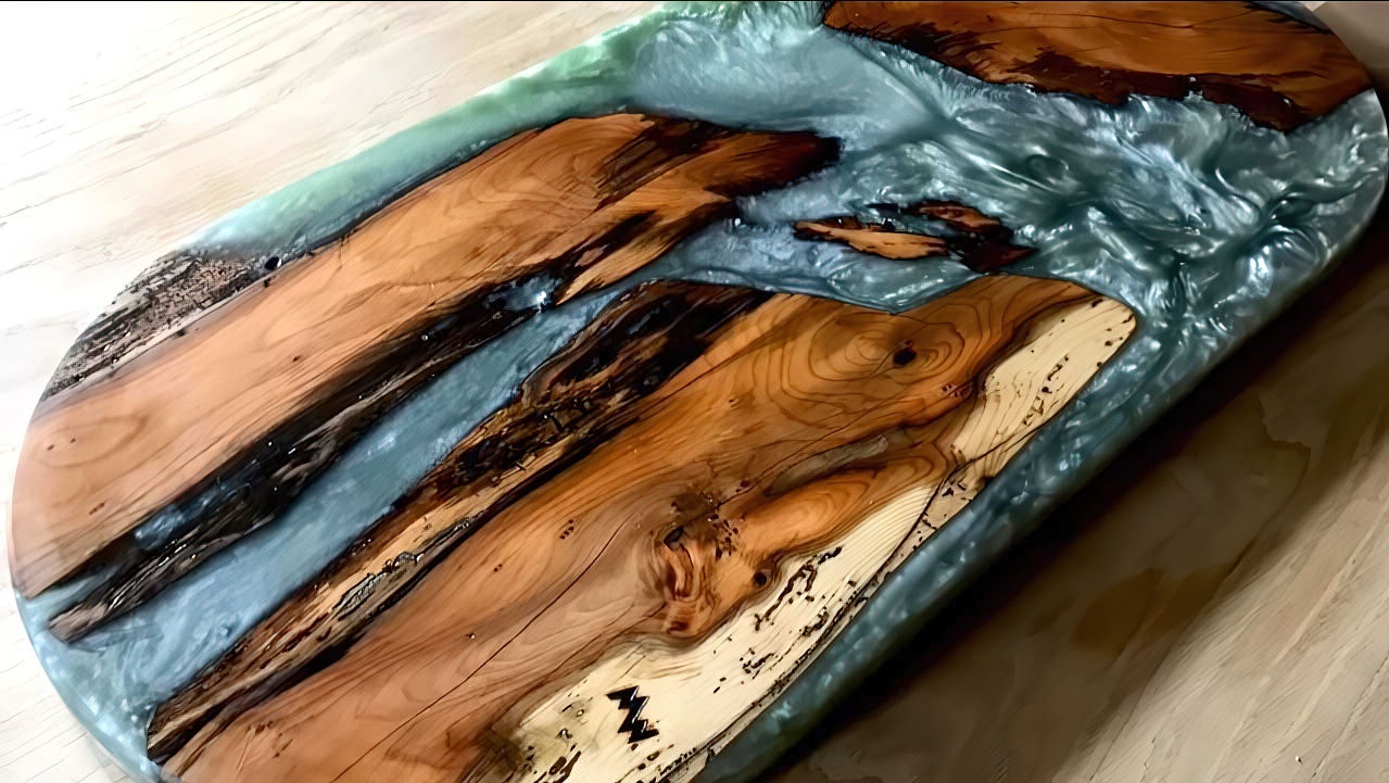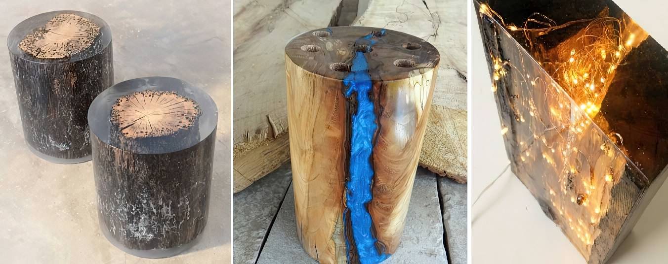 Попробовать комбинировать дерево и эпоксидку. Наличие большого количества пор в древесине приводит к тому, что смола быстро заполняет все отверстия. Кроме того, воздух может вытесняться в раствор, создавая в нем большое количество пузырьков. Наконец, неправильное соотношение размеров древесной и полимерной частей может привести к раскалыванию формы. Именно поэтому необходимо тренироваться работать с обоими материалами, обрабатывать доски, аккуратно заделывать стыки и швы.