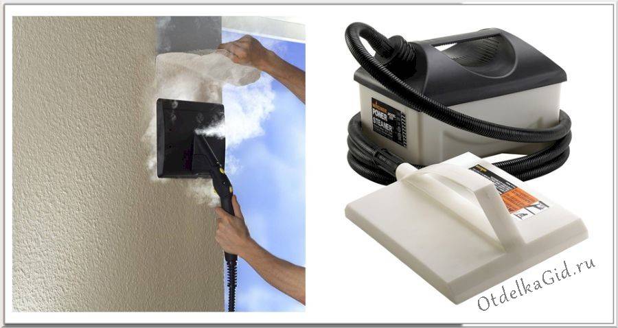 Профессиональный отпариватель для отделения покрытия от основы своей конструкцией напоминает пылесос. Под воздействием горячего пара засохший клей растворится, и оторвать обои от гипсокартона будет очень просто.
