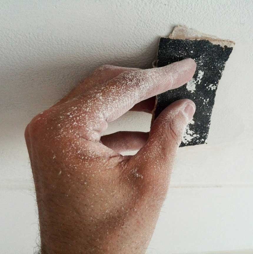 - Высохший слой шпаклевки на стыках затирается с помощью наждачной бумаги.