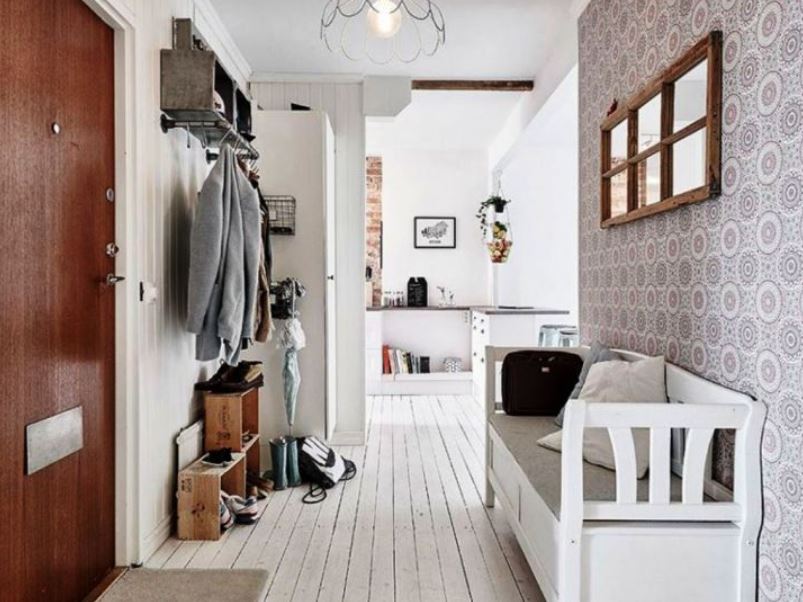 Легкий и воздушный скандинавский стиль подходит для оформления узкого коридора прежде всего светлой цветовой гаммой и невероятно уютной обстановкой.