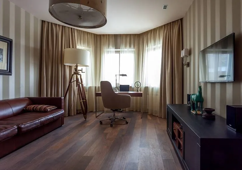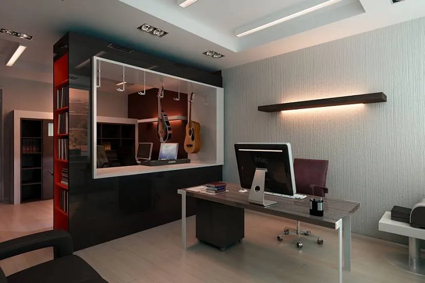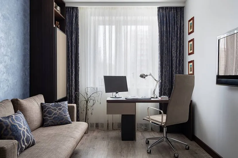 Ещё совсем недавно считалось, что позволить себе рабочий кабинет в доме или квартире могут только обеспеченные люди. Даже не из-за дороговизны, а просто потому, что «а зачем он другим?». Поэтому по умолчанию предполагалось, что обеспеченный человек живёт в большом доме и может отвести под кабинет отдельную комнату. Сегодня, с развитием техники, кабинет в квартире перестал быть привилегией и потребностью только богатых людей. В наши дни рабочий кабинет в квартире может быть нужен и представителю творческой профессии, и фрилансеру – любому человеку, который хотя бы часть времени работает на дому. Обустройство отдельной комнаты под кабинет в стандартной квартире обычно довольно проблематично, т.к. свободных комнат попросту не имеется. Поэтому часто возникает необходимость сделать кабинетом одну из зон в общей комнате, гостиной, спальне. В такой ситуации при разработке дизайна кабинета в квартире в первую очередь действуют принципы функциональности и эргономичности. То есть всё необходимое для работы должно быть расположено максимально удобно и не занимать много места.