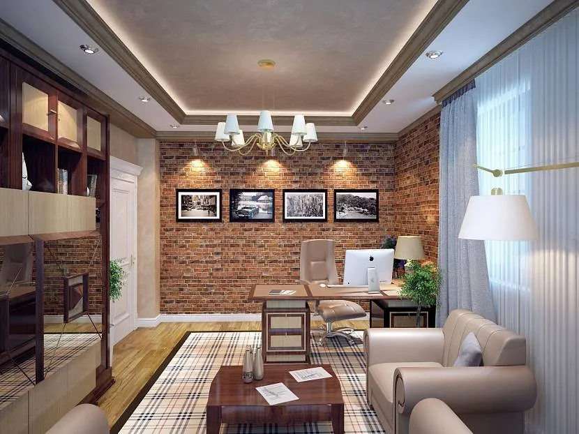 Рабочий кабинет в квартире с кирпичной стенойИсточник www.d-a-r.kz/
