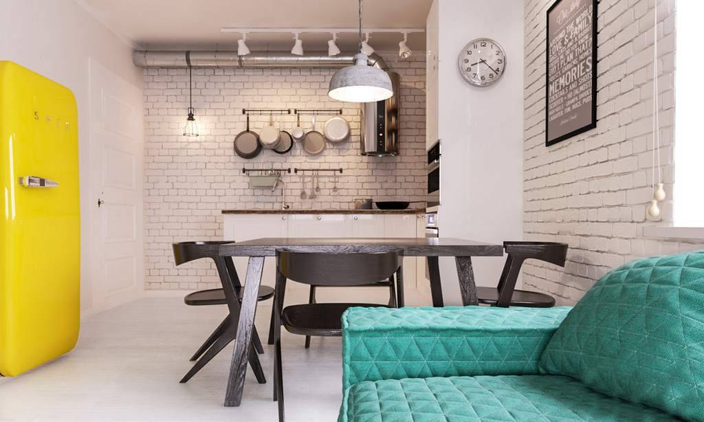 Интерьер маленькой квартиры в стиле лофт 33 кв. м.