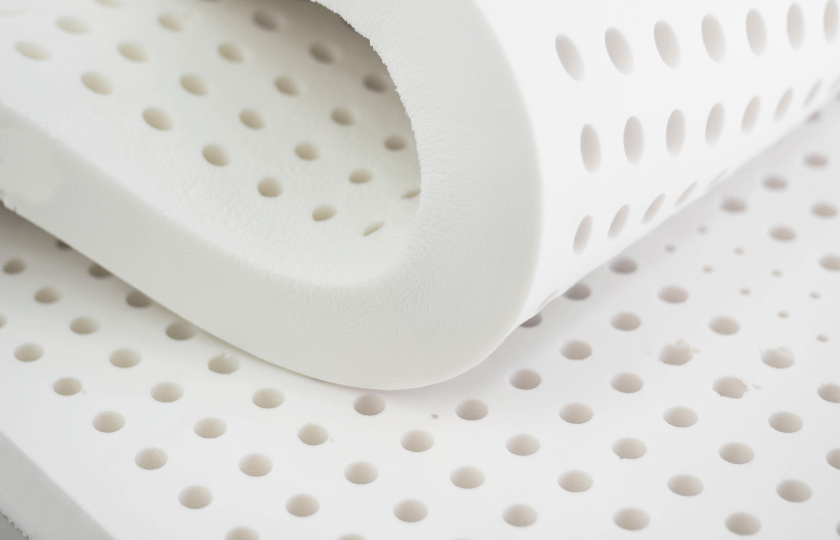 - Латекс. Наполнитель из вспененного каучука с перфорацией обеспечит оптимальную поддержку, комфорт и гигиеничность. Считается одним из лучших вариантов для матрасов.