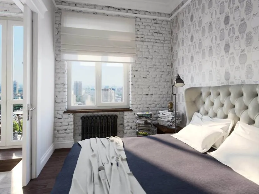 - В спальне, окна которой выходят на южную сторону, лучше выбирать обои стойкие к выгоранию: винил или флизелин.