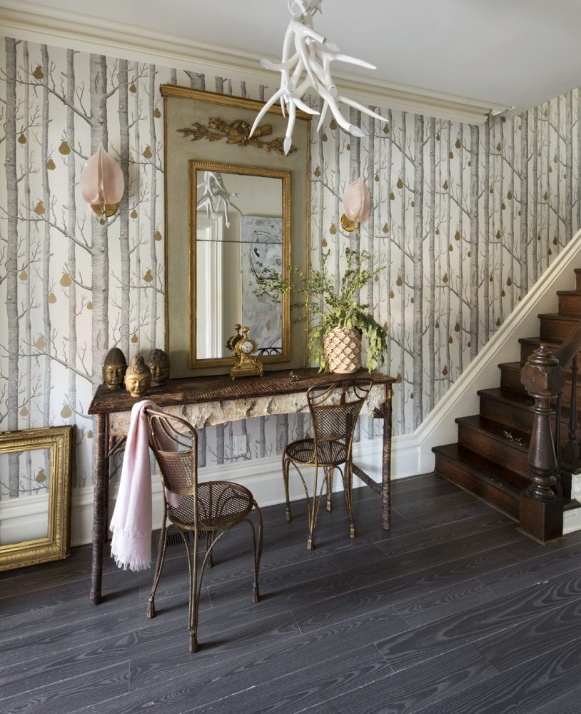 Стиль также не обходится без такого декоративного материала, как обои. Для оформления акцентных стен, для выделения важных поверхностей это покрытие подходят как нельзя лучше.