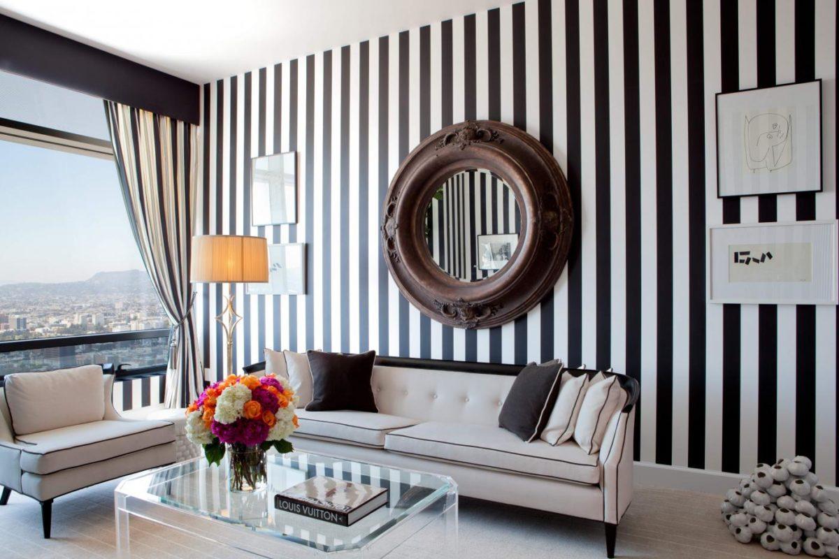 Также вертикальные полосы могут уменьшить общий объём, при этом визуально увеличив высоту потолка. Горизонтальные – делают помещение ниже. Значит, чем шире у нас будут полосы, тем меньше они повлияют на пространство.
