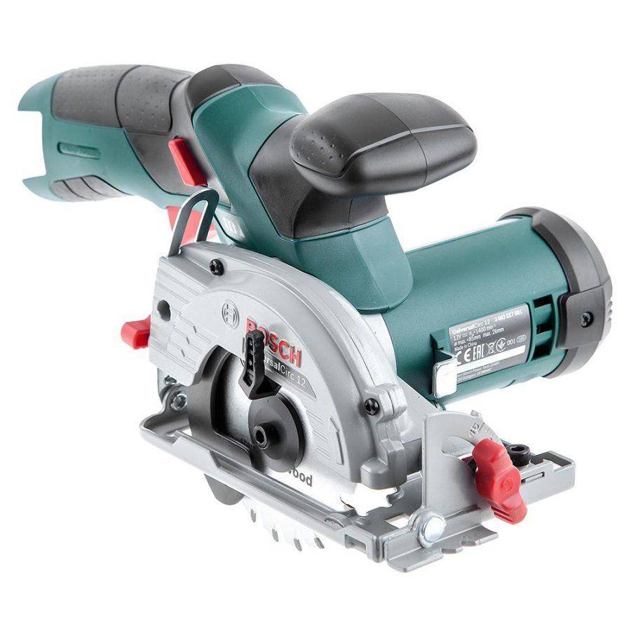 Универсальная пила обладает мощностью всего 0,6 кВт, но работает на скорости 5500 оборотов за минуту. Диаметр дисков составляет 89 мм, инструмент подходит как для реза древесины, так и для обработки металла на глубину 3 мм. Модель оснащена лазерным прицелом и параллельным упором, они повышают качество работы и помогают соблюдать четкость линий.
