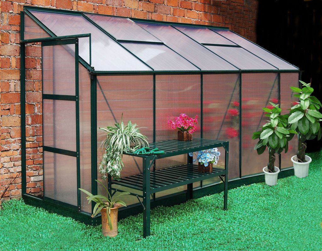 Наилучшим вариантом использования пристенной теплицы считается выращивание горшечных растений. В примыкающую стену удобно монтировать навесные полки и стеллажи, что способно значительно увеличить полезную площадь теплицы. Варианты исполнения пристенных видов парников и теплиц из поликарбоната изображены на фото ниже.