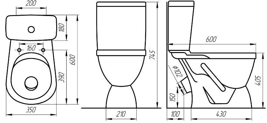 Кстати говоря, размеры унитазов строго регулируются ГОСТом. Так, например, размеры унитаза компакт выглядят следующим образом: