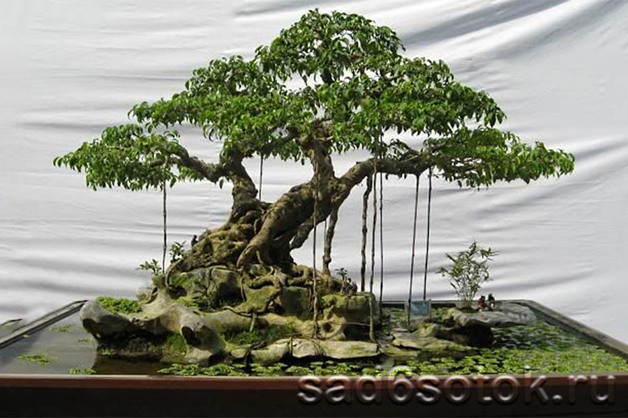 Бонсай специально размещается в маленькой емкости, поскольку увеличение плодородного субстрата ведет к разрастанию корневой системы, образованию длинных побегов с крупными листочками. Если растение не обрезать, комнатный цветок со временем потеряет декоративный вид.