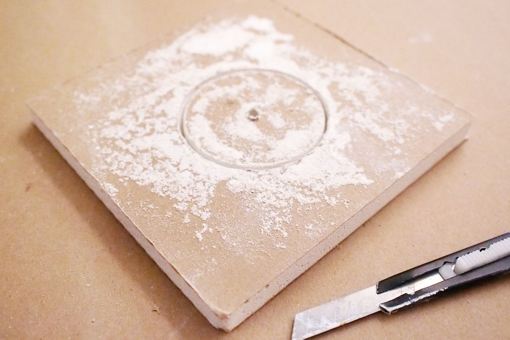 Грани отверстия обрабатываются шпатлевкой (важно не допускать попадания влаги на рабочую поверхность).