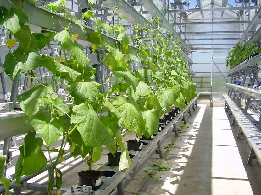 Выращивание огурцов в промышленной теплицеИсточник promgidroponica.ru