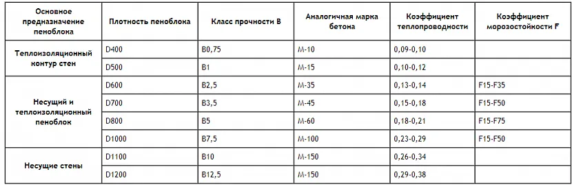 Теплопроводность и морозостойкость различных марок пеноблоковИсточник kladka-info.ru