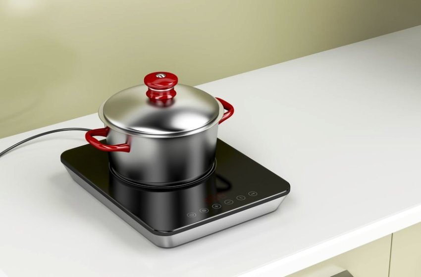 Индукционная плитка оснащена электромагнитными катушками и стеклокерамической поверхностью