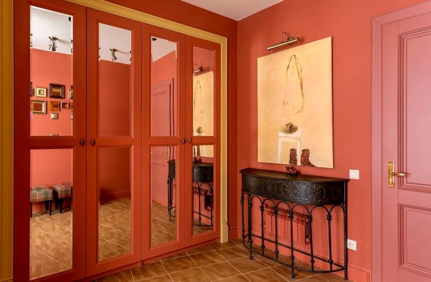 Красный цвет придает любому помещению роскошь и царственную обстановку. Но вот в помещении прихожей его нужно применять аккуратно.